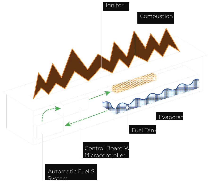 No connection to gas is needed. The system works autonomously, without risks, complex connections, or extra engineering costs.